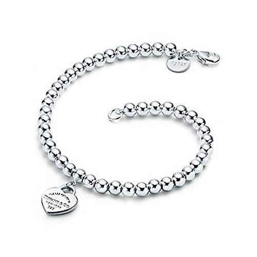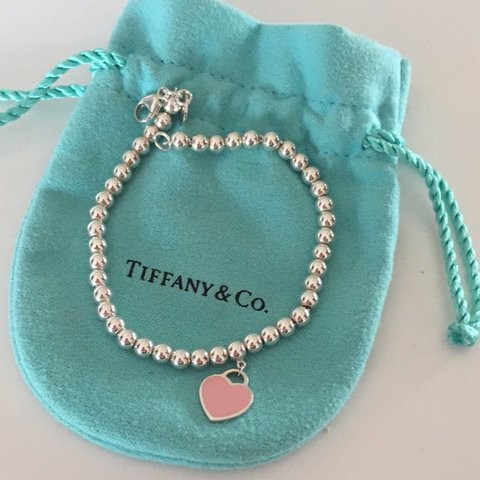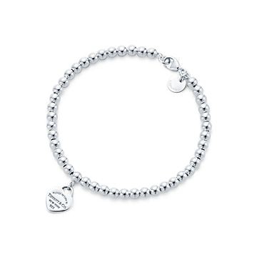 Inspired by the iconic key ring first introduced in 1969, the Return to Tiffany collection is a classic reinvented. This elegant bead bracelet features an engraved tag with a pink enamel finish, evoking a subtle femininity. Sterling silver tag with enamel finish On a bead bracelet Heart Size Mini Fits wrists up to 7.25" Beads, 4 mm